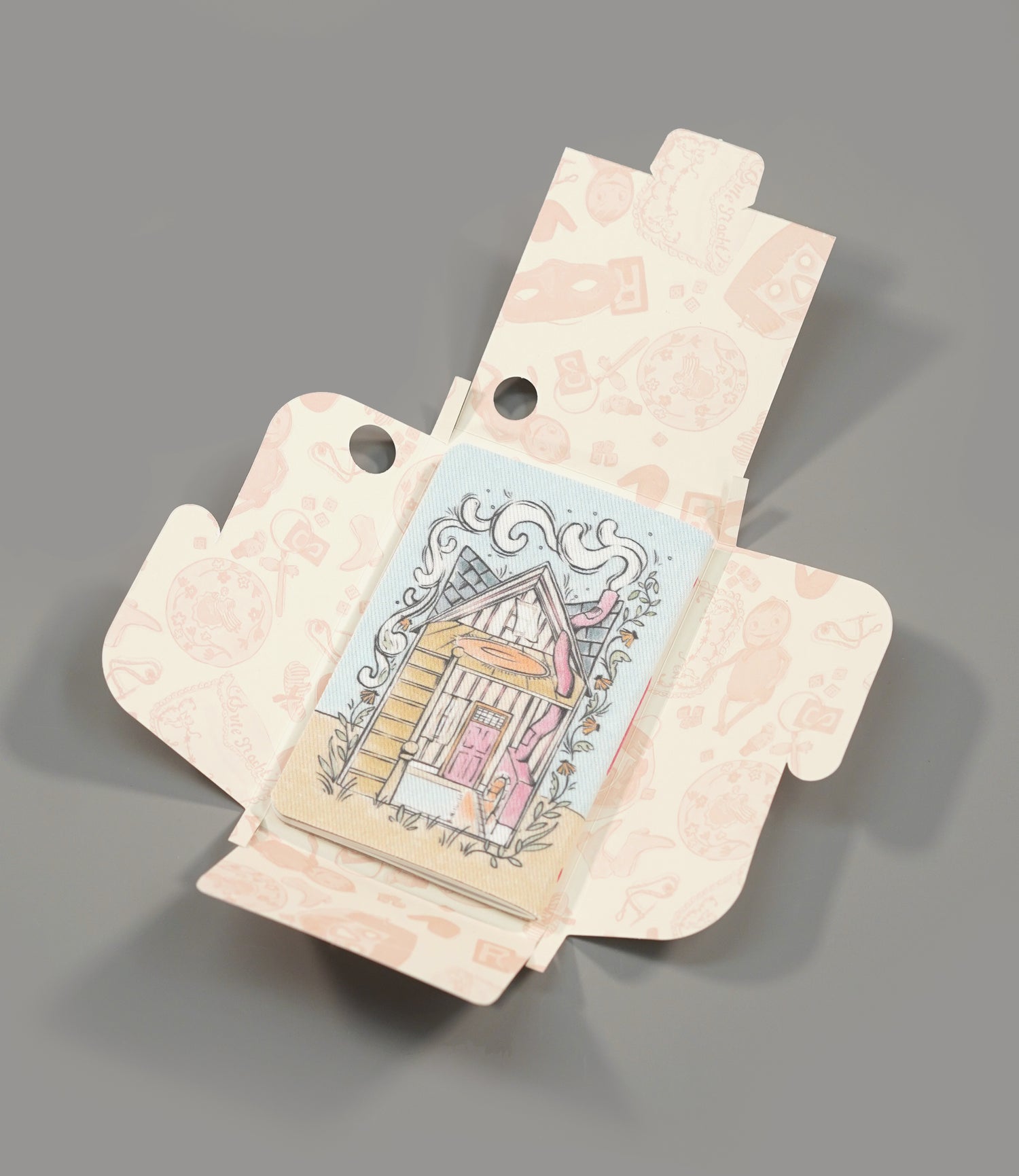 For our collaboration, Jeanyn illustrated a cross section of a house where you can look into the rooms, like a more fleshed out doll house. The house motif repeats in a lot of Jeanyn's work, and reflects her love of observing the way people are evident in their spaces. The house in our notebook design was based off of a sketch of the painter Fitz Henry Lane's house in Gloucester, MA.”