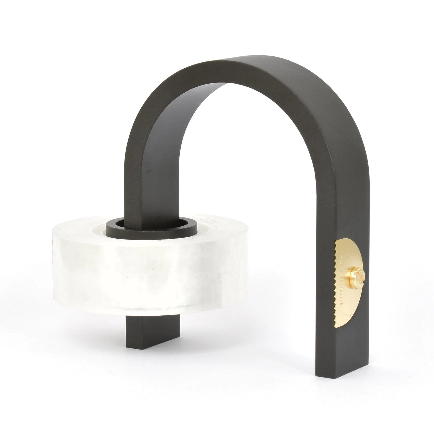 The all metal construction Hoop tape dispenser takes a simple unassuming form that brings elegance to any desktop space whilst also being an extremely durable and high performing piece of kit. The combination of precision machined aluminium and custom made brass blade ensure a clean cut through the tape.