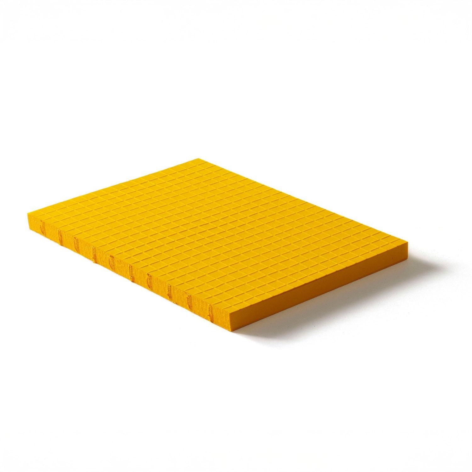 A beautiful notebook with exposed flatlay binding and an embossed grid pattern on the cover.