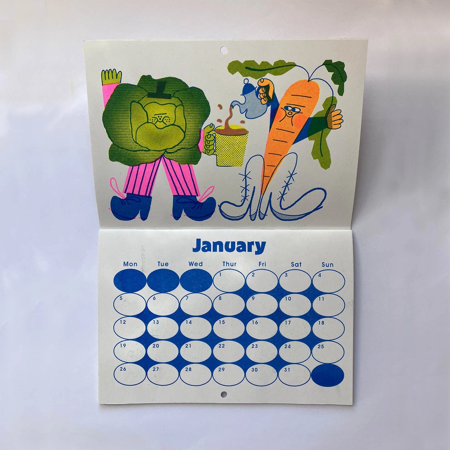 Seasonal Fruit and Veg Risograph 2026 Calendar